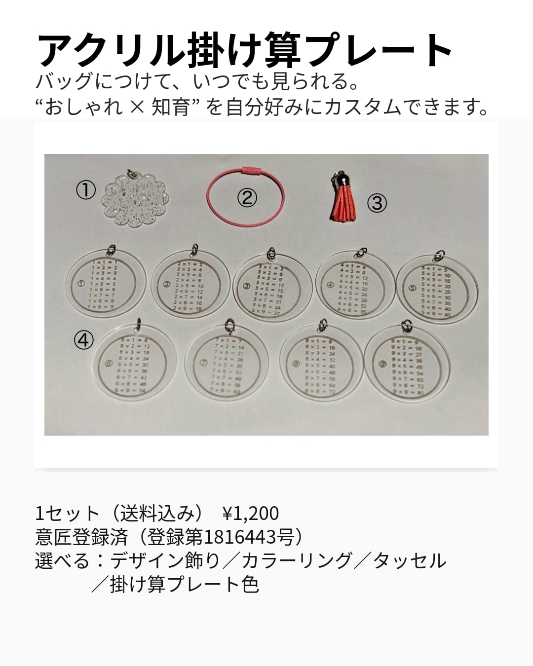 アクリル掛け算暗記プレート(キーホルダー)